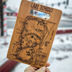 $28.00The perfect gift for anyone who loves Lake Bemidji! This 9x6in bamboo cutting board is laser-engraved with the full lake illustration by Hank Esterby from the 60s. A little slice of Bemidji that fits right in your kitchen. #shopdowntownbemidji #myBemidji